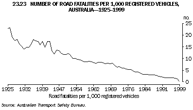 Attitudinal change has seen drink driving become largely unacceptable within the general Australian population. In 1990, Victoria made wearing of bicycle helmets compulsory, with the other States and Territories following through 1991 and 1992. At that time no other country had compulsory wearing of bicycle helmets. IMPROVED ENFORCEMENT TECHNOLOGY Enforcement technology, such as speed cameras, has made a major impact since being introduced in the late 1980s, first in Victoria and later in most other jurisdictions. Other innovations include laser based speed measuring devices and red light cameras. IMPROVED ROADS Australia's roads are today considered to be significantly safer than in the past. The Commonwealth Government's Black Spots programs have encouraged individuals and groups to nominate dangerous sections of road for specific improvement. Commonwealth funding has seen major upgrading of the National Highway. Other roads have been the target of considerable work by State and local governments in shoulder sealing, use of audible edge-lining and other delineation treatments, removal of roadside hazards and improved speed zoning. THE FUTURE All levels of government in Australia are heavily committed to reducing further the number and severity of road crashes and improving the efficiency of the road network. The turnaround that has been achieved in Australia's road safety performance since 1970 has highlighted the effectiveness of a resolute, coordinated approach by government. Notwithstanding the progress attained so far, much remains to be achieved. Recent work2 has suggested that a reduction to 860 annual road fatalities is potentially achievable by the year 2020. The Commonwealth, State and Territory Governments recently agreed to set a target of no more than 1,600 annual road crash deaths by the year 2005. While no level of crash death or injury is acceptable, this target is intended to focus efforts over the next few years. Road safety stakeholders have already set down a detailed road safety strategy and implementation plan3 for the immediate years ahead. This sets out a detailed plan of coordinated policies and legislation supported by enforcement, community involvement and public education activities. ENDNOTES 1 Bureau of Transport Economics 2000, Road Crash Costs in Australia. Report 102. 2 Vulcan, P. 1997, Predicting road fatalities for 2001 and beyond. Paper presented to the Road Safety Research and Enforcement Conference, Hobart, November 1997. 3 National Road Safety Strategy and Action Plan 1996, published by the Federal Office of Road Safety on behalf of the National Road Safety Implementation Task Force. Document Selection These documents will be presented in a new window.