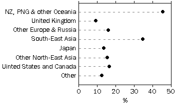 EXPORTERS BY COUNTRY OR REGION OF DESTINATION - 1994-95 EXPORTERS USING INTERMEDIARIES The 1994-95 survey collected information on the methods by which export sales were made. Most businesses exported directly overseas to an unrelated business. This method also accounted for the largest proportion of export revenue generated in 1994-95 (48%). The next most popular method was selling directly to subsidiaries with 16% of exporters involved, generating a similar proportion of total revenue. Document Selection These documents will be presented in a new window.