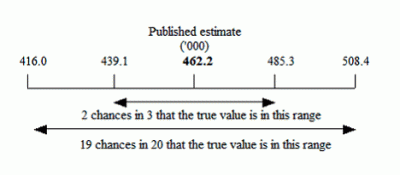 Sampling error is the difference between the published estimates, derived from a sample of persons, and the value that would have been produced if the total population (as defined by the scope of the survey) had been included in the survey.